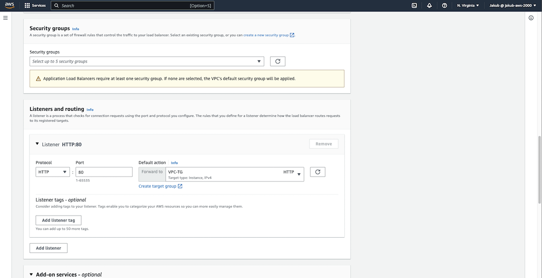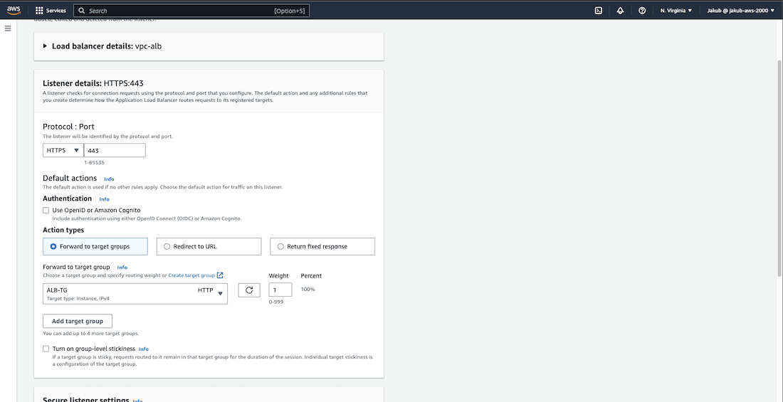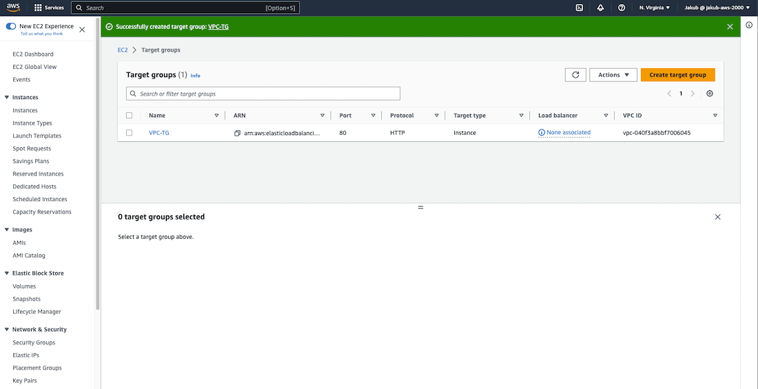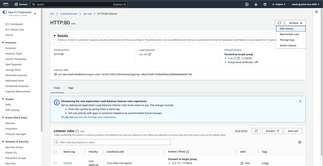 Now, head back to our Listeners and routing section and click on the Refresh button. Select our newly created target group and click on Create Load Balancer at the bottom of the page. We're done here ;)
