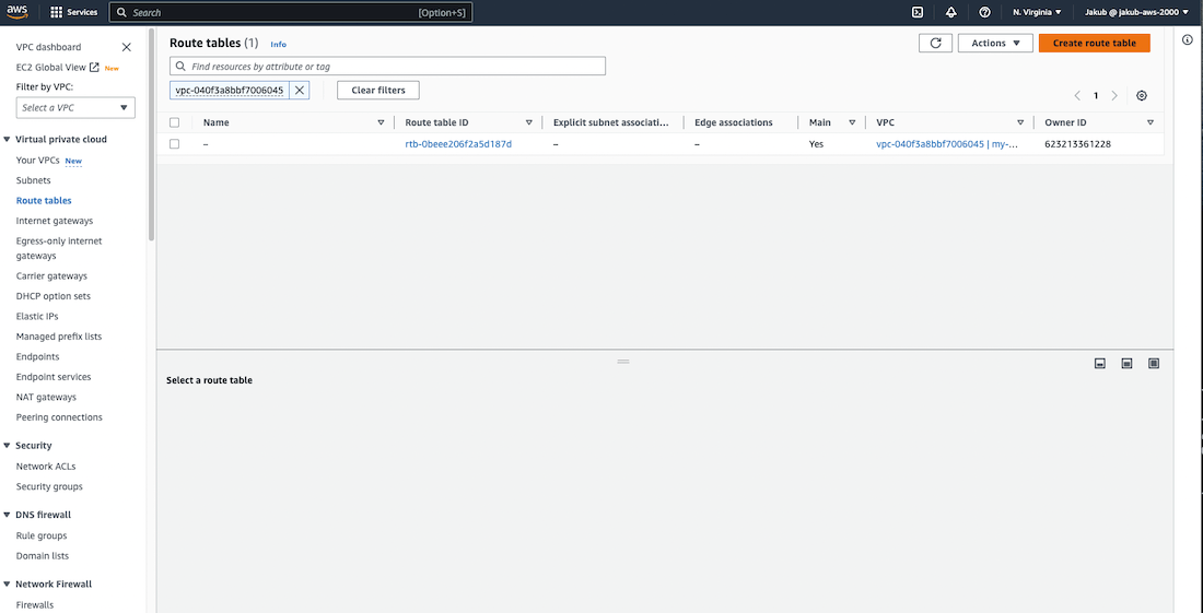 To create a route table, we need to follow these steps. First, go to the Route tables option and click on the Create route table. If you have already created a VPC, you should have a route table as well. On the next screen, the user needs to provide a name for the new route table and select the VPC. After that, click on Create route table.