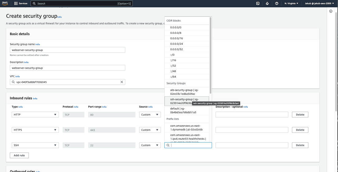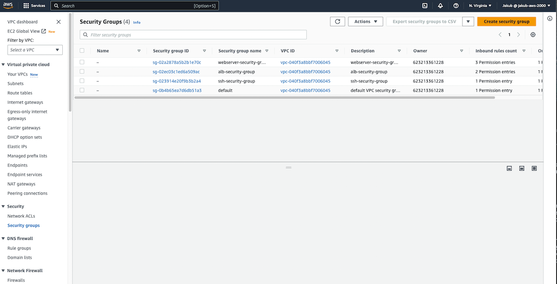 We need to create security groups for our EC2 instances, Application Load Balancer, and SSH.