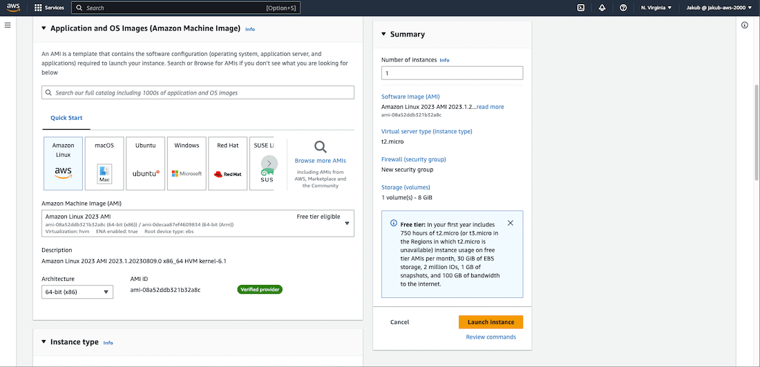 in the search bar at the top and select it from the list. On the next screen, click on the Launch instance button.