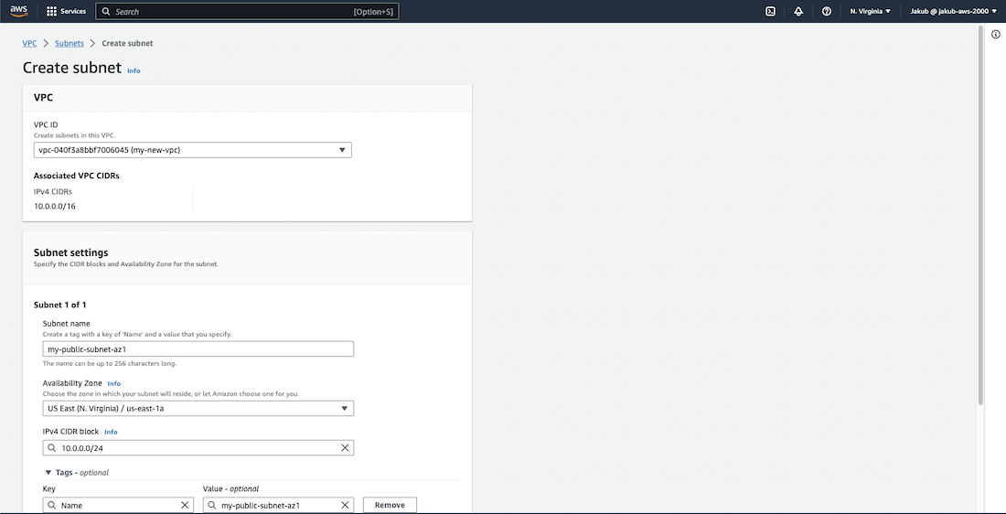 Repeat the same steps for the next three private subnets, but change the name, AZ, and IPv4 CIDR block. Please refer to the screenshots and architecture diagram for reference and make sure that the subnets are in the correct AZs.