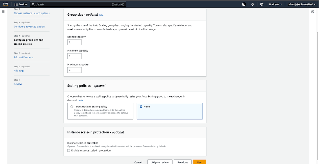 In the Group Size option choose the capacity you desire. Once done, click on the Next button. On the Add Notifications page, you can set up email notifications in case of an autoscaling event. Simply click on Add Notification, then Create Topic. Enter the name and email address where you would like to receive notifications and click Next.