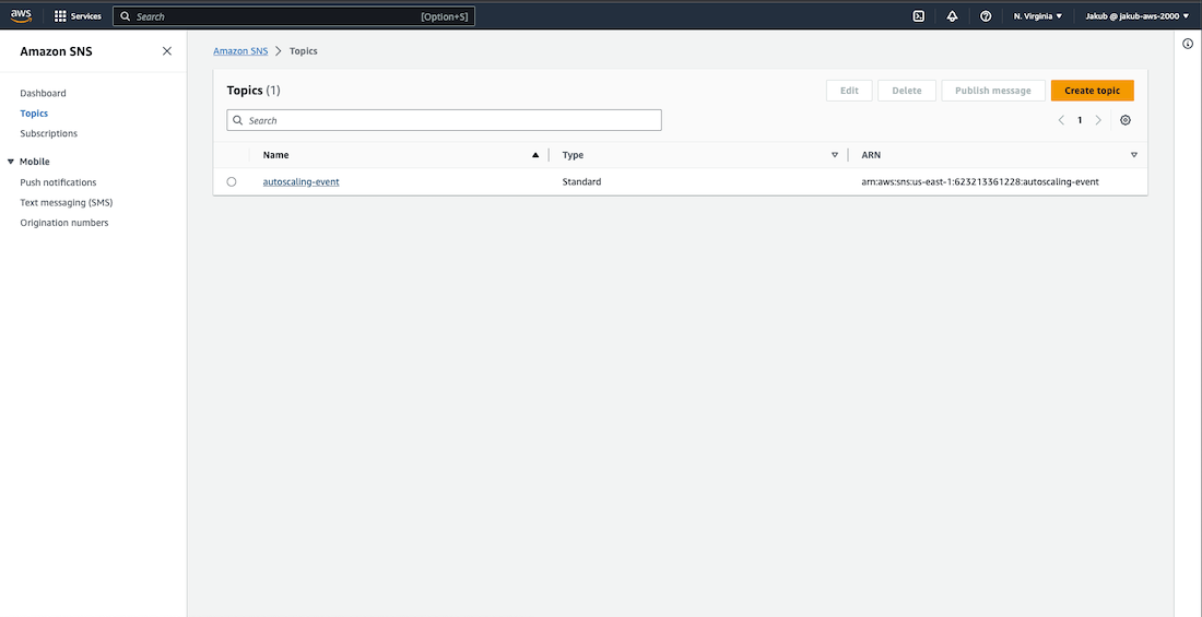 Let's check if everything is working correctly. First, we need to inspect the Simple Notification Service (SNS).